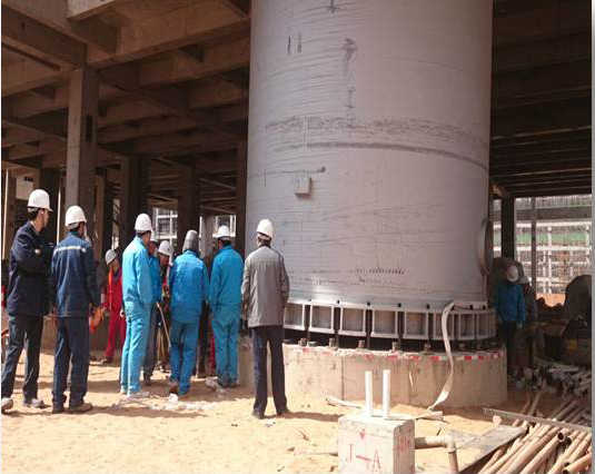 為了搶進(jìn)度,完成業(yè)主、甲方及監(jiān)理下達(dá)的里程碑節(jié)點,在洗滌塔吊裝工作中, 項目部在沒有定距模板的情況下,自行制作模板,準(zhǔn)確完成洗滌框架全部螺栓預(yù)埋和混凝土澆筑,高標(biāo)準(zhǔn)順利完成了煤氣化裝置首臺洗滌塔吊裝。