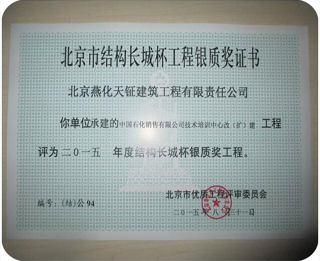 祝賀我公司中石化銷售公司技術(shù)培訓(xùn)中心工程榮獲2015年度北京市結(jié)構(gòu)長(zhǎng)城杯銀獎(jiǎng)。